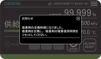 吸着剤の交換時期を表示パネルのインジケータで確認可能です。