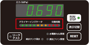 露点計搭載により表示パネルで水素の露点温度を確認可能です。