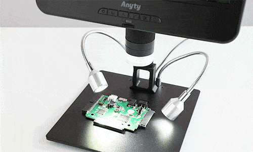 自在な角度で照射できるスネークライトを搭載した液晶付きデジタル顕微鏡。