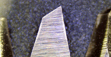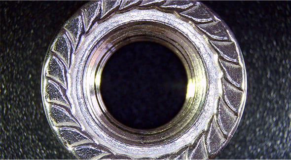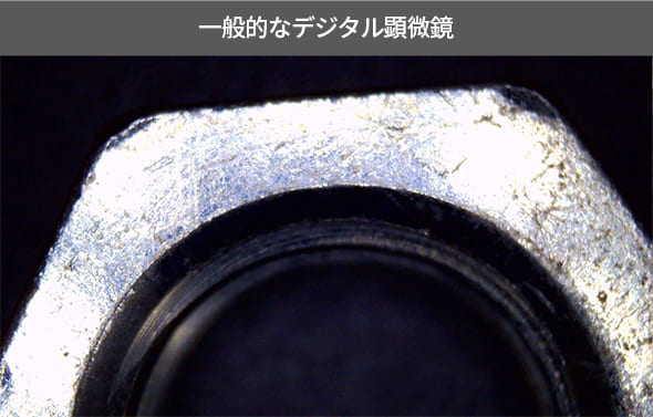 一般的なデジタル顕微鏡では上から光を当てて観察するため、金属が反射してキズやバリが見えにくいことがあります。本製品は、上部・左右両側からの照射によって反射を軽減。キズやバリをより鮮明に観察できます。