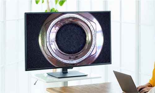 液晶付きデジタル顕微鏡では最大クラスの9.7インチモニタを搭載。一般的な3.5インチモニタでは見えにくく判断しづらかった微細な箇所の不具合もはっきり映し出し、見落としを防ぎます。大画面での検査はより見やすく、検査効率や複数人での同時観察に役立ちます。