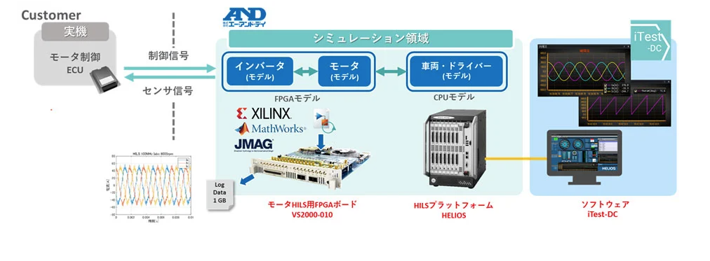 FPGAボードの高速演算によるモータ挙動の再現と高速I/Oにより、モータ制御ロジック開発・検証の工数削減に貢献致します。