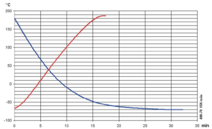 急速な温度変化を可能にした高効率なヒーター、及び冷凍機の採用により10℃~25℃/分範囲での急激な温度変化を実現しています。