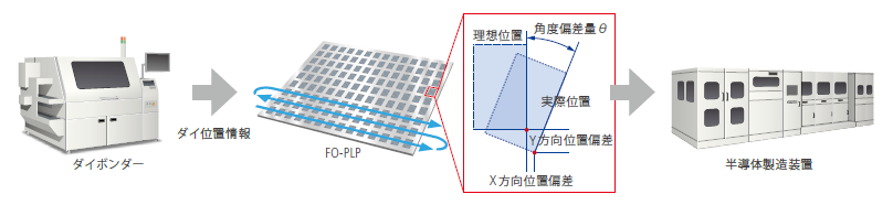 クイックビジョンProのハイスループット測定は、半導体パッケージFO-PLPのRDL工程内の位置情報測定に適しています。またIOソフト(オプション)も充実しており、スカラロボットなどによるワークの自動搬送などシステム化が容易に行えます。