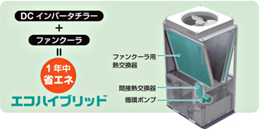 DCインバータチラーとファンクーラを一体にし、大幅な省エネを実現した新しいチラーです。