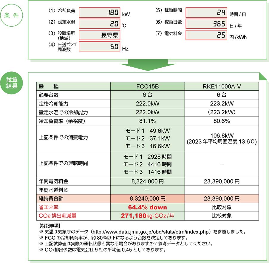 ※1冷水温度20℃、周囲温度32℃、冷水圧力0.5MPa、冷水流量125L/minでの運転時。冷却能力は表示能力の-5%以上です。