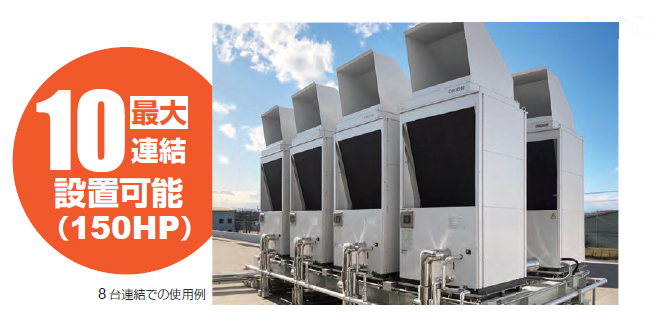 モジュールチラーとして最大10連結設置が可能(150HP)