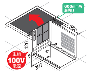 圧縮機内蔵の一体型で製品サイズもコンパクトなため、設備完工後の結露問題にも後付け設置可能(電源:単相100V)