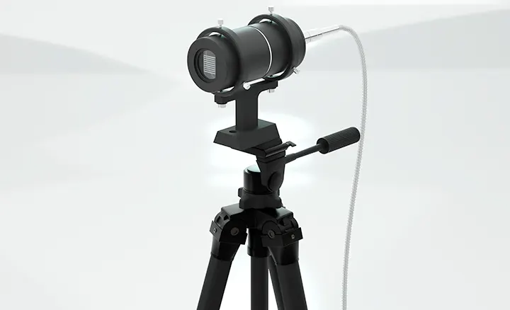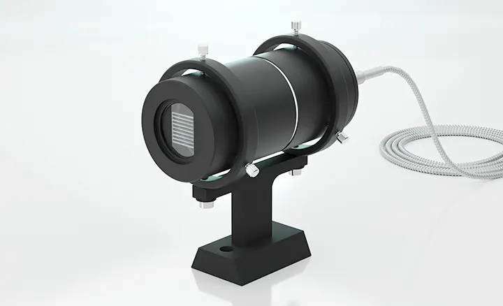 PIV Laser Fiber Spectra FC6000 seriesは、ファイバー先端に接続された光学系によって、精度の高いシート光を照射します。アクセスの難しい場所でも自由度高く可視化を行うことが可能です。シート光の厚みは、光学系の操作で可変でき、任意のエリアにシート厚を調整して視認性の高い観測が行えます。また、光学系は付け替えが可能(※)で、実験のニーズに合わせた照射角度の選択ができます。構成品であるホルダーと組み合わせれば、三脚や治具で固定して実験ができます。