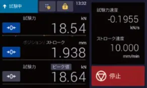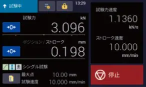 試験中の測定値表示内容をオペレーターの見やすい形式を選択できます。測定値を2 行表示にすれば、試験中に少し離れた場所でも計測値を目視で確認できます。