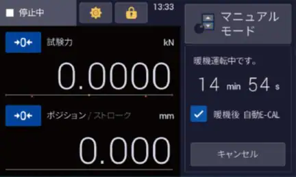 試験機起動時に必ず行う試験力電気校正を自動で実施します。煩わしい操作もなく、操作忘れも防ぐことができます。