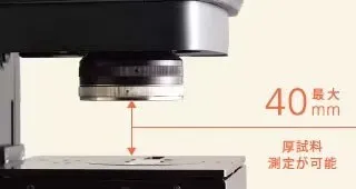 [試料取り出し] ボタンを装備。ボタンを押すとステージが下がり、対物鏡が自動で切り替わるので、試料の出し入れが容易に行えます。また、下部コンデンサ鏡を取り外すことにより、最大40 mm厚試料の反射/ATR測定が可能です