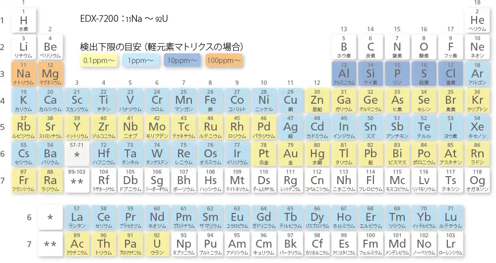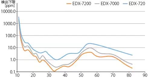 ・ 20Ca以下の軽元素で試料容器を用いた分析では、フィルムの吸収により検出下限目安よりも悪くなります。