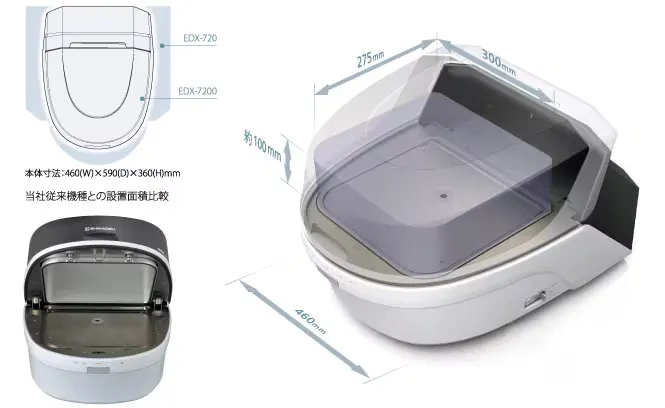 460mm幅のコンパクトなボディサイズで、設置幅を従来型装置(EDX-720)より20%削減しました。