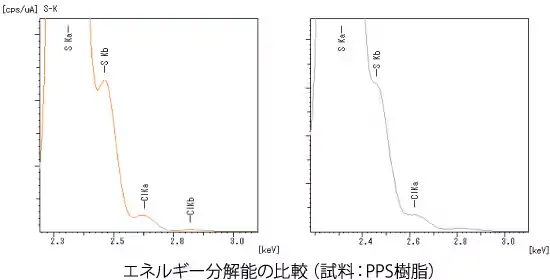 Si(Li)半導体検出器を搭載した従来型装置(EDX-720)と比べ、エネルギー分解能がすぐれています。
