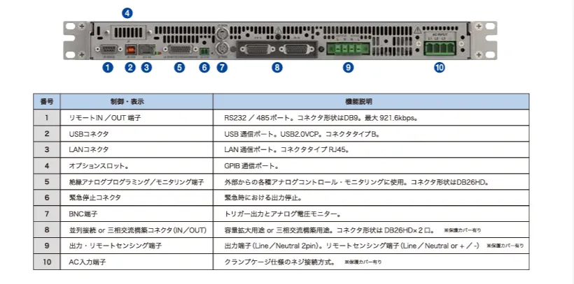 | 通信インターフェース | 標準:絶縁アナログ/USB/RS232/RS485/LAN オプション:GPIB | ||||