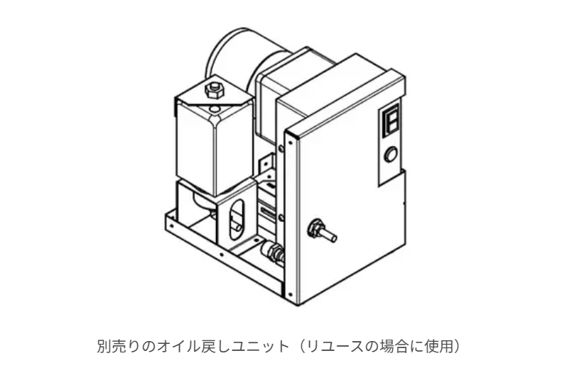 排油したオイルを、別売りの戻しユニットで計測対象機器へ戻すことも可能です。